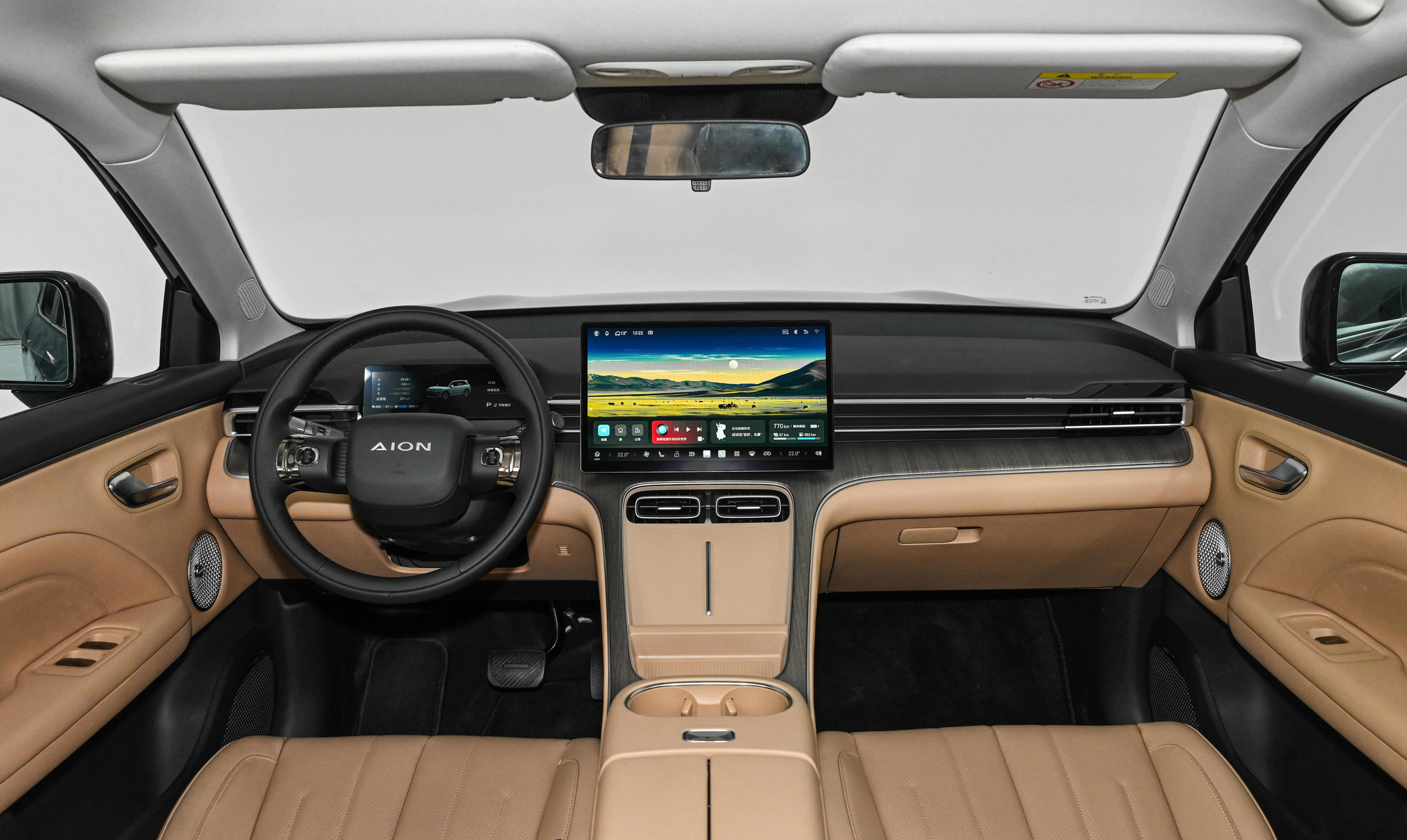 进入车内,双幅式多功能方向盘、悬浮式全液晶仪表盘、悬浮式中控屏和电子怀挡组成了车内的驾驶 区域。座椅为5座设计,并采用了大量软质材料包裹,舒适度不错。配置上,根据车型不同提供了胎压显示、自动驻车、上坡辅助、陡坡缓降、倒车雷达、全景影像、L2级别辅助驾驶、无钥匙进入、一键启动等,还搭载了广汽GSD智驾辅助系统,支持高速NDA和HPA智能泊车功能,能实现上下匝道、变道。