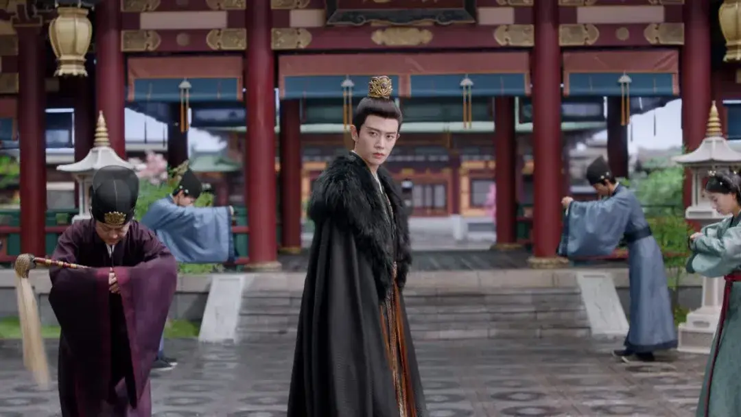 朝堂上,眼神扫一眼朝臣,不怒自威,将君王的威严演绎得淋漓尽致。